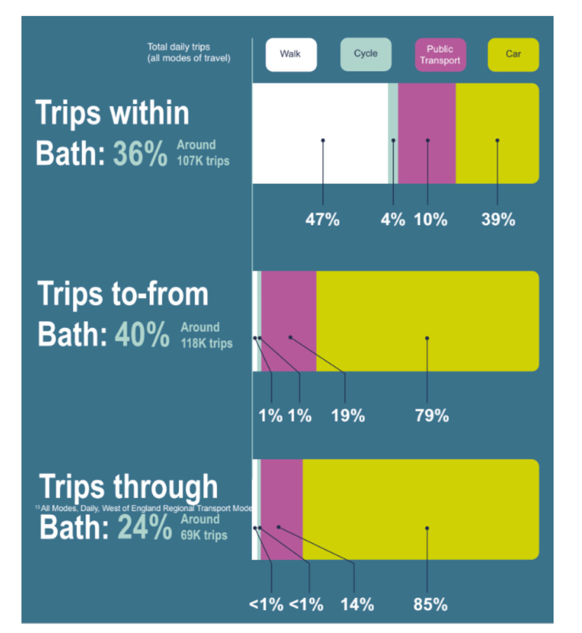 A Movement Strategy for Bath - "delivering our journey to net zero" promise is out for consultation - see https://banestransport.co.uk/ - until 28th November. "The Movement Strategy for Bath sets out a series of 15 strategic levers—actions we plan to take over the next decade to transform how people move around Bath. These levers are grouped under three key goals":