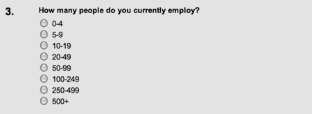 I'm being something of a pedant here - but it's critically important to consider the user experience when designing a form, and it's important to consider what the answers will mean. With this survey, I found myself wondering "should I bother", and "I can't see how the results will be anything like as useful as they could have been". Rather sad, really, for the information here could form an excellent knowledge base of business characteristics in our local area.