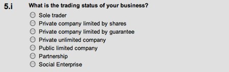 I came across a business survey to fill in this morning. I started. Then I stopped, cleared it, and took it in to class - as an excellent demonstration of some of the issues that system designers should consider when they're designing a form, based on the thoughts of a user filling it in. Seven pages ... lets' look at the thirteen fourteen questions on the first of them.