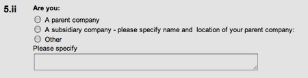 Now that's a really odd one. We're not a parent, we're not a subsidiary - we're just a simple little company. How extraordinary that we have to enter "other" and explain!